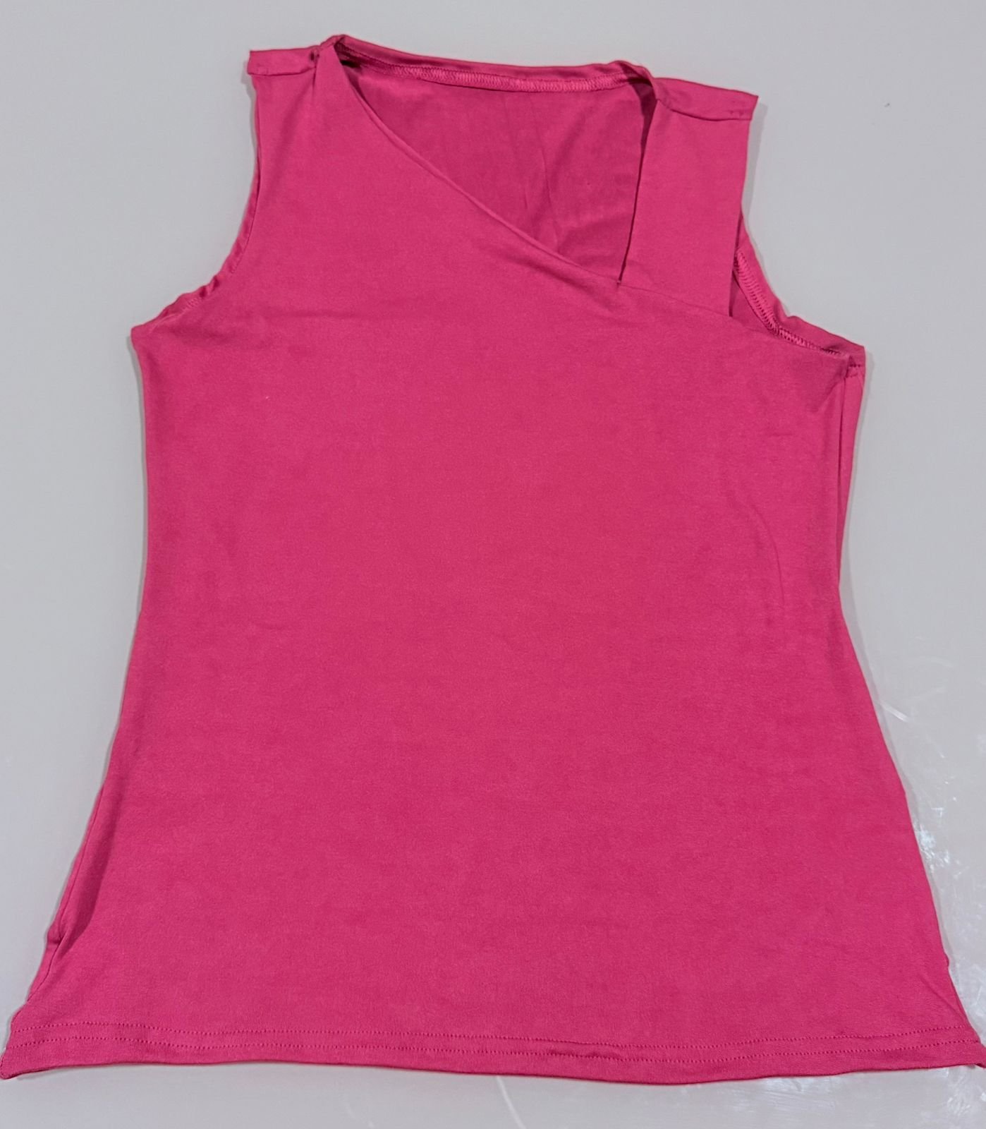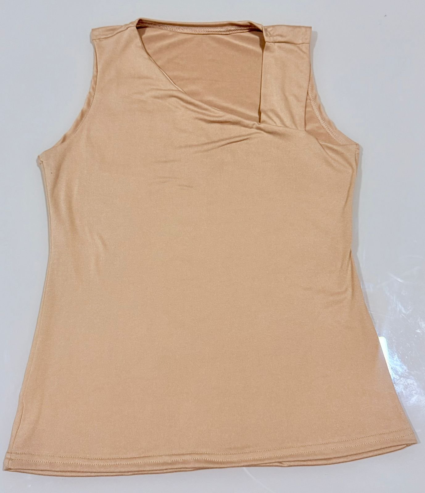 BLUSA COM OMBRO ASSIMÉTRICO, COSTAS FECHADAS.