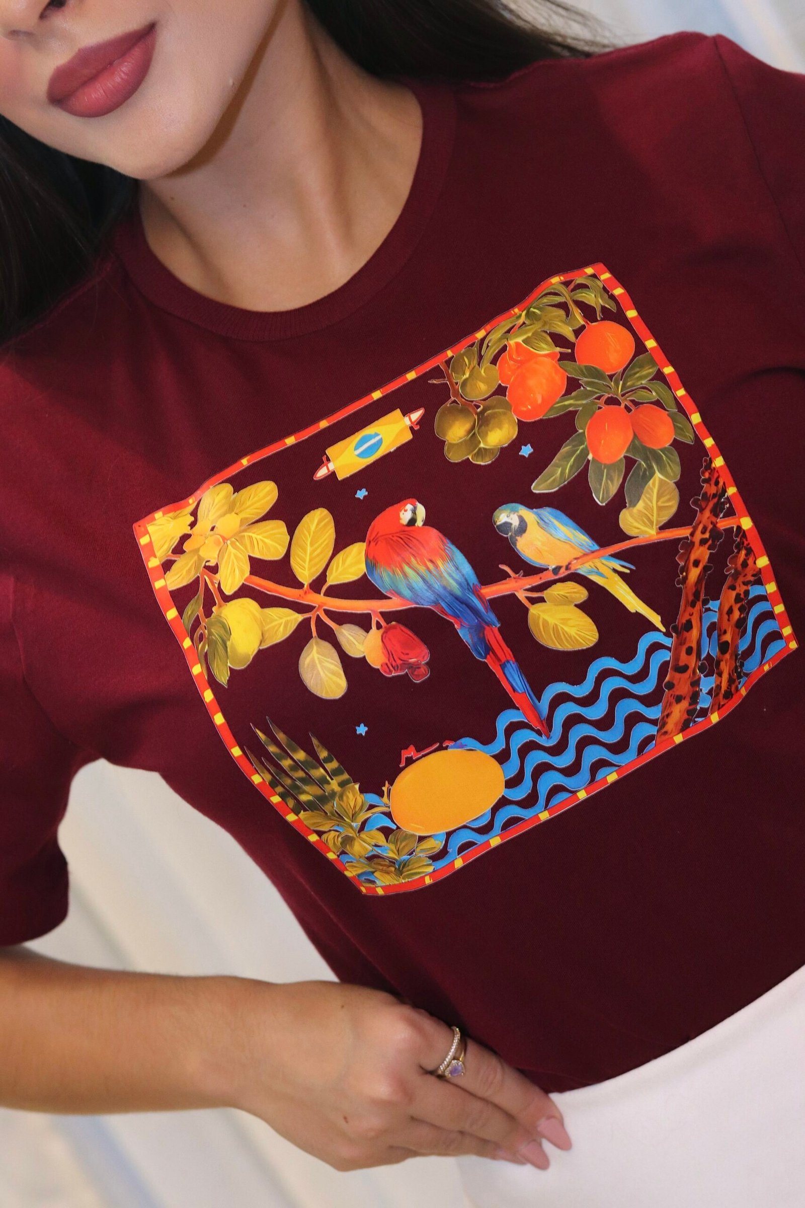 T-SHIRT COM ESTAMPA EM DTFS, TODA COM OMBRO PASSADO COSTURA.