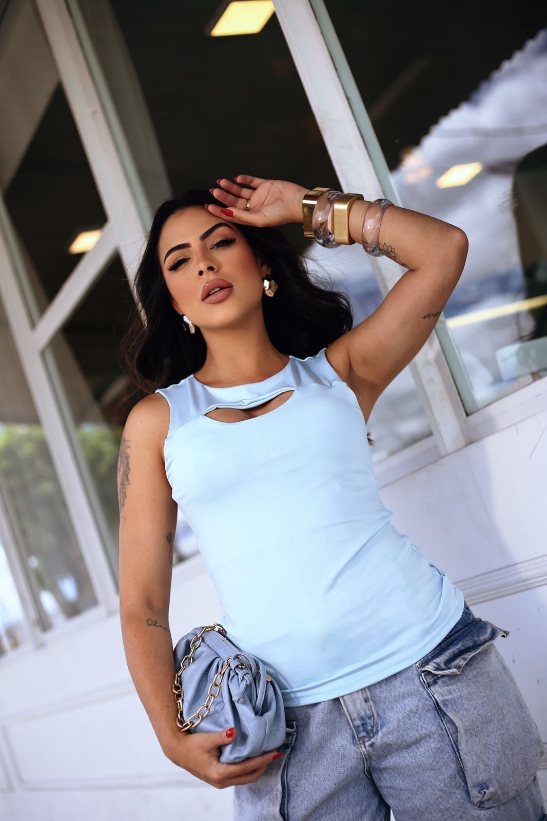 MODELO REGATA COM ABERTURA NO BUSTO.