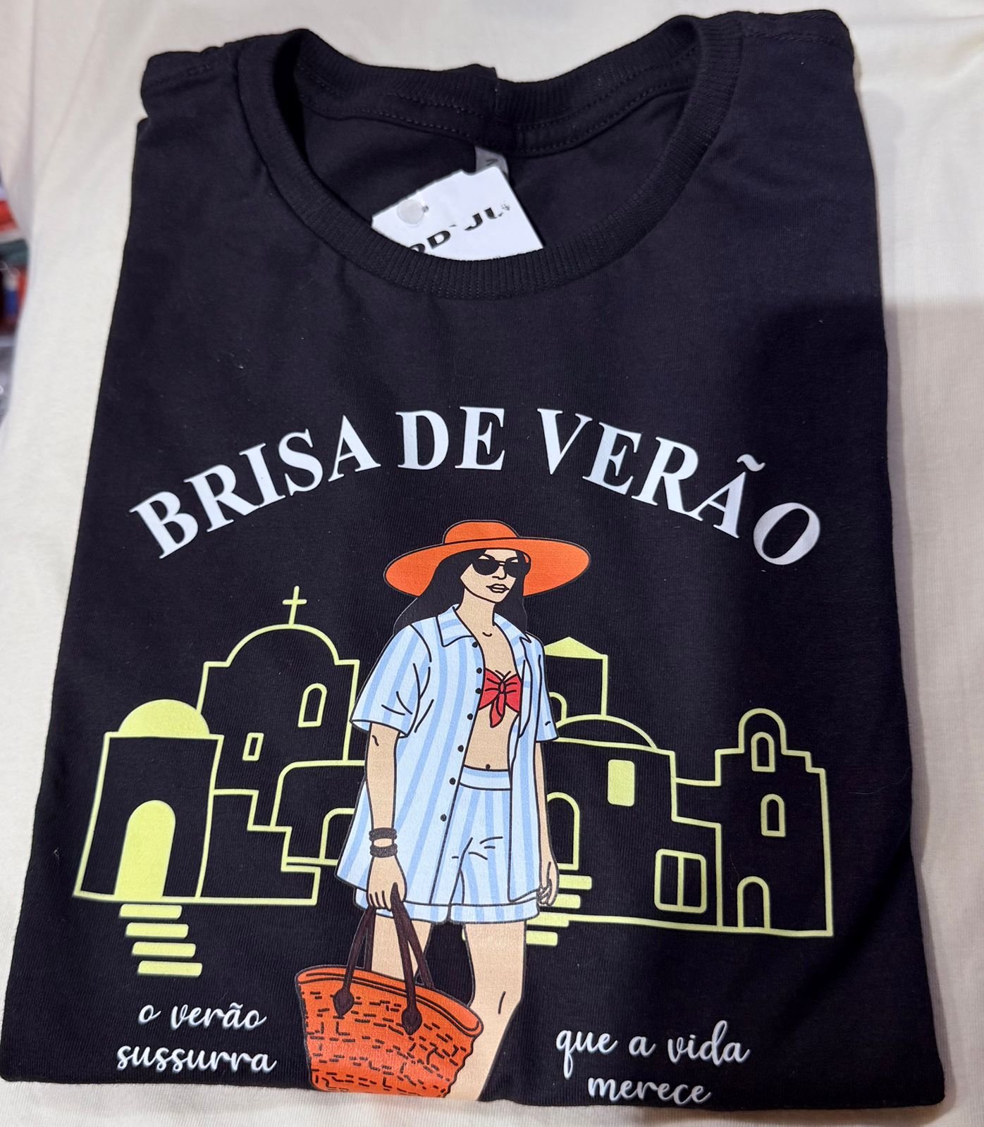 MODELO COM GOLA EM RIBANA E ESTAMPA EM DTF.