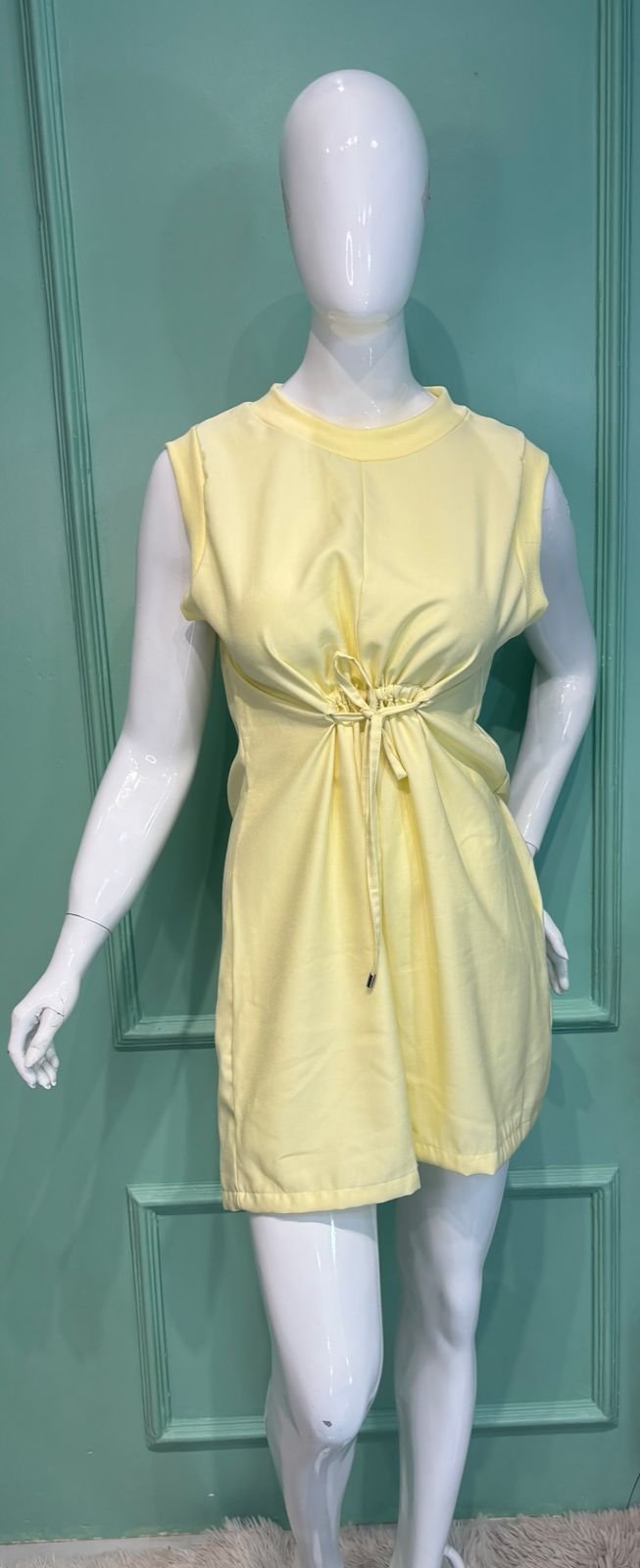 MACAQUITO COM CAVAS E GOLA EM RIBANA, ZIPER NAS COSTAS E AJUSTE ABAIXO DO BUSTO EM VIES.