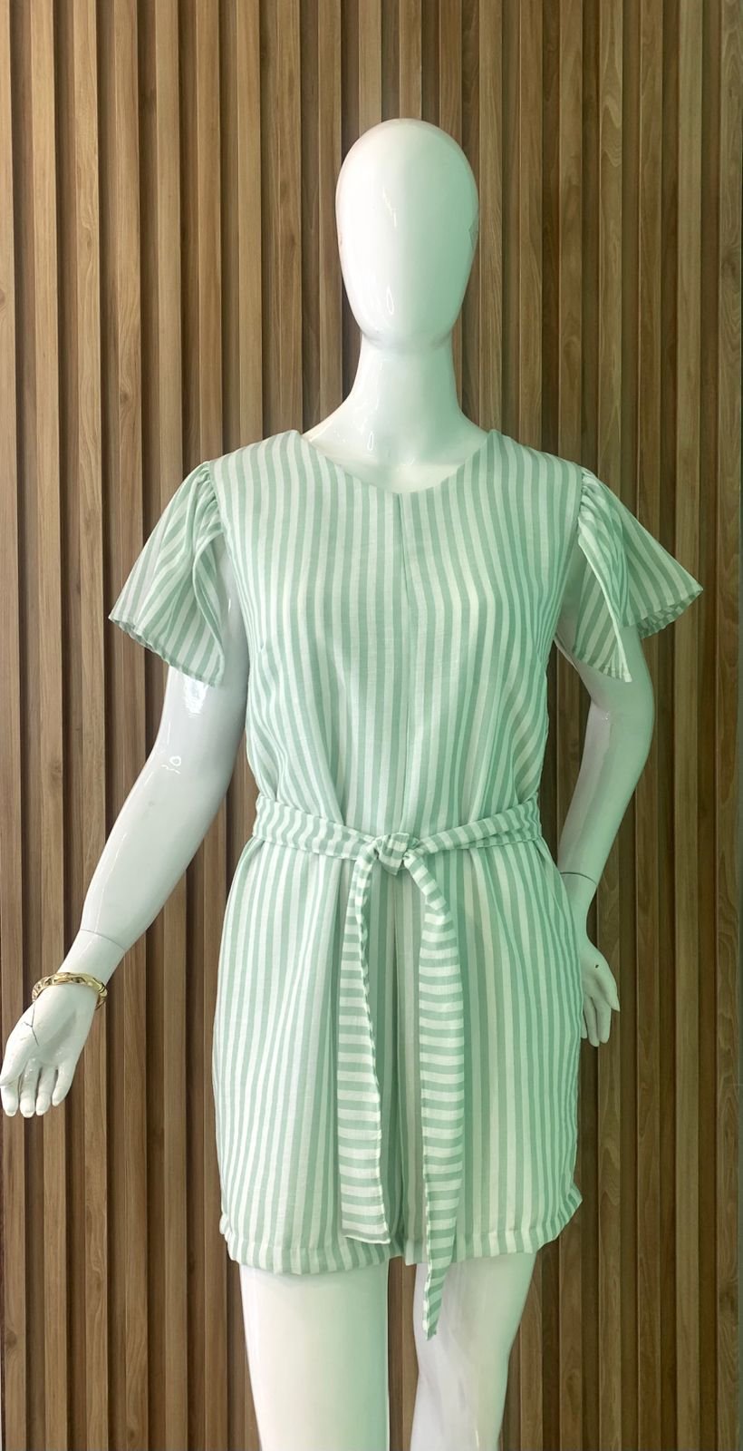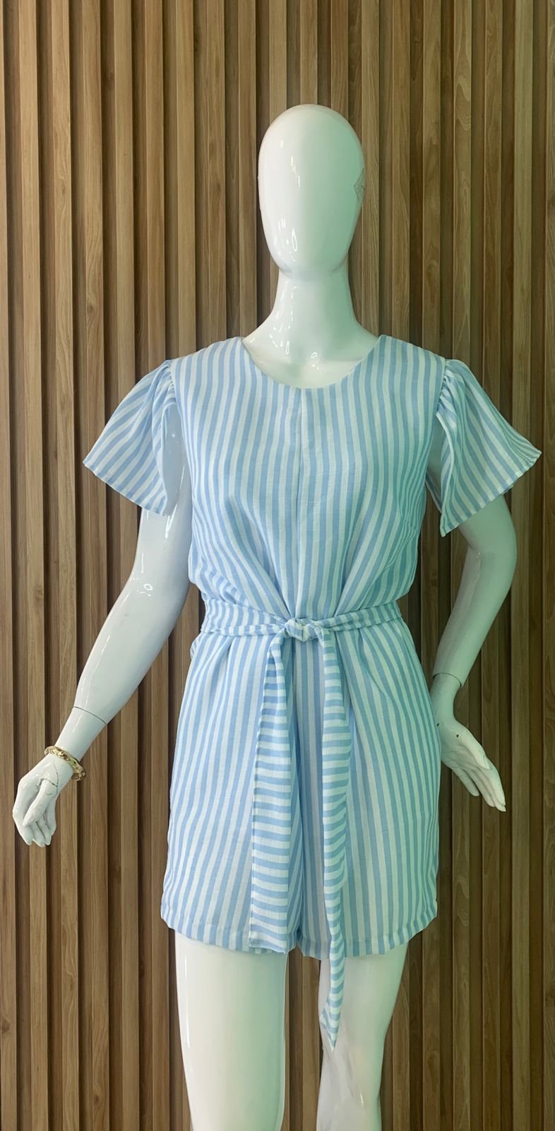 MODELO MANGAS VASADA, AMARRAÇÃO NA CINTURA E SHORT COM FORO.