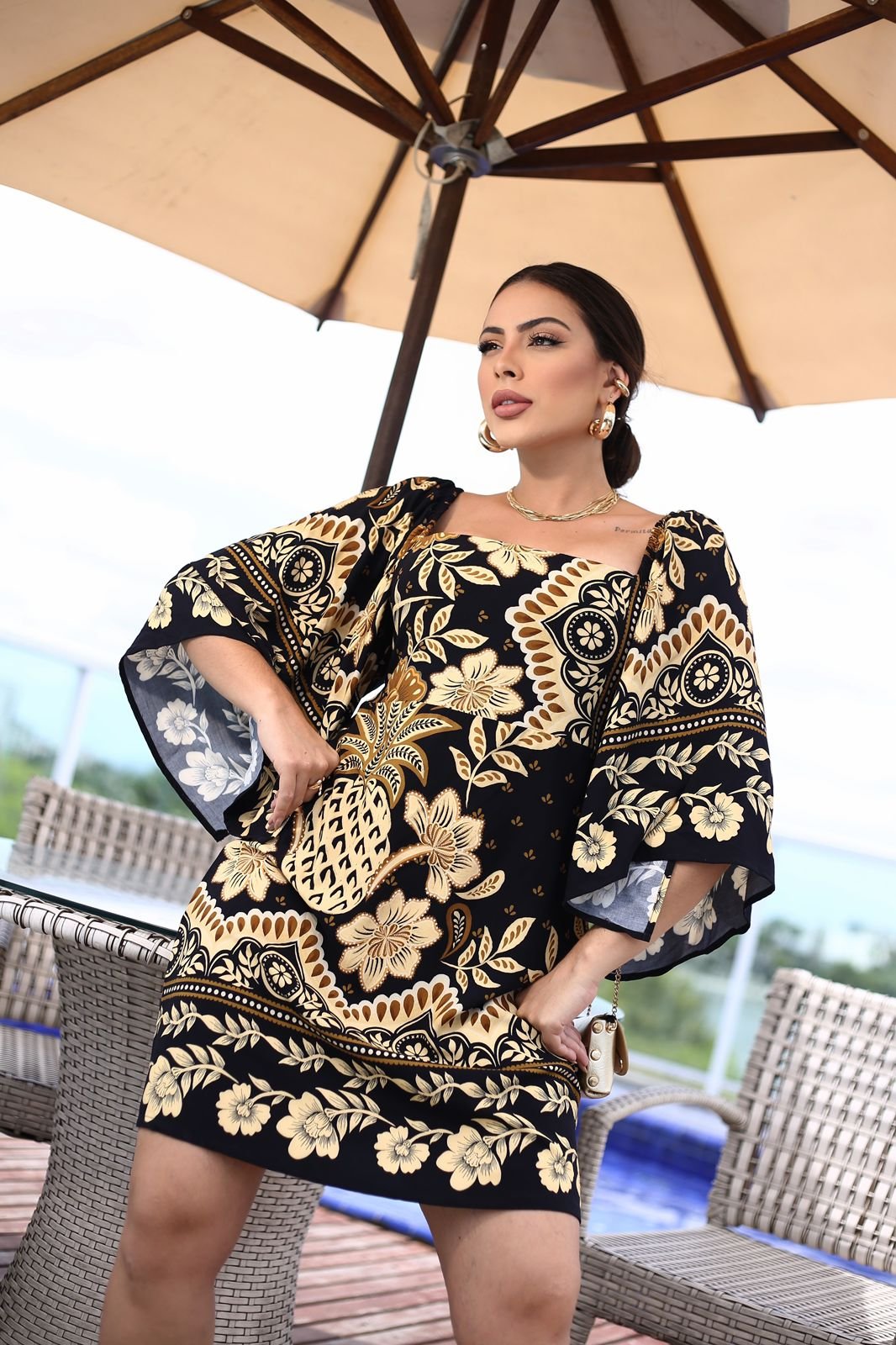 MODELO COM DECOTE QUADRADO,MANGAS COM ABERTURA NA PARTE DE BAIXO E ELÁSTEX NAS COSTAS.